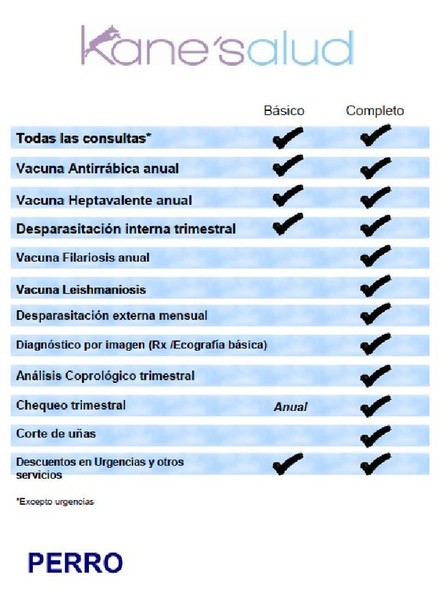 En una sola tarjeta toda la prevención y consultas para su mascota. Desde la tarjeta Kanesalud Básico como opción más económica hasta Kanesalud Completo como opción de todo incluido.