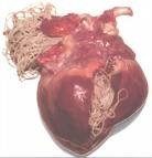 Aunque pueda afectar a gatos y al hombre, el principal resevorio de la enfermedad es el perro, localizándose las fases adultas en corazón derecho, sobre todo en el ventrículo derecho y arteria pulmonar. La hembra, al ser Ovovivípara, elimina directamente las larvas de primer estadío (MICROFILARIAS) al torrente sanguíneo, llegando hasta la sangre periférica, de modo que, cuando el mosquito pica al perro, ingiere la sangre con las microfilarias, las cuales evolucionan en el tubo digestivo del mosquito hasta larva de tercer estadío. Cuando el mosquito vuelve a alimentarse, deposita ésta larvas de tercer estadío que son las que llegan al corazón para madurar y hacerse adultos. El tiempo que tarda desde que entra la larva de tercer estadío hasta que se liberan las microfilarias a la sangre es de 6 meses.